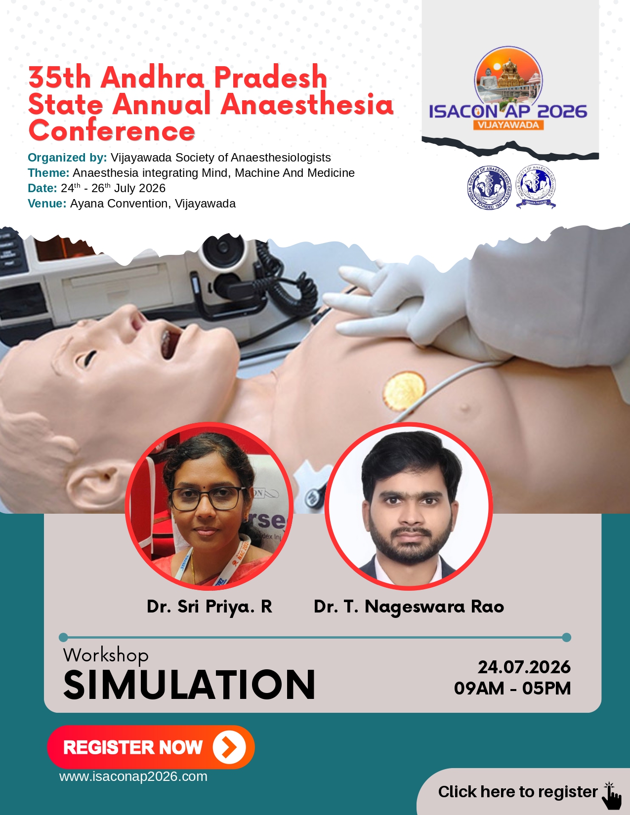 ISACON AP 2026 is the 35th Annual Andhra Pradesh State Conference of Anaesthesiology, bringing together experts, delegates and postgraduate students for academic learning, workshops and professional networking.